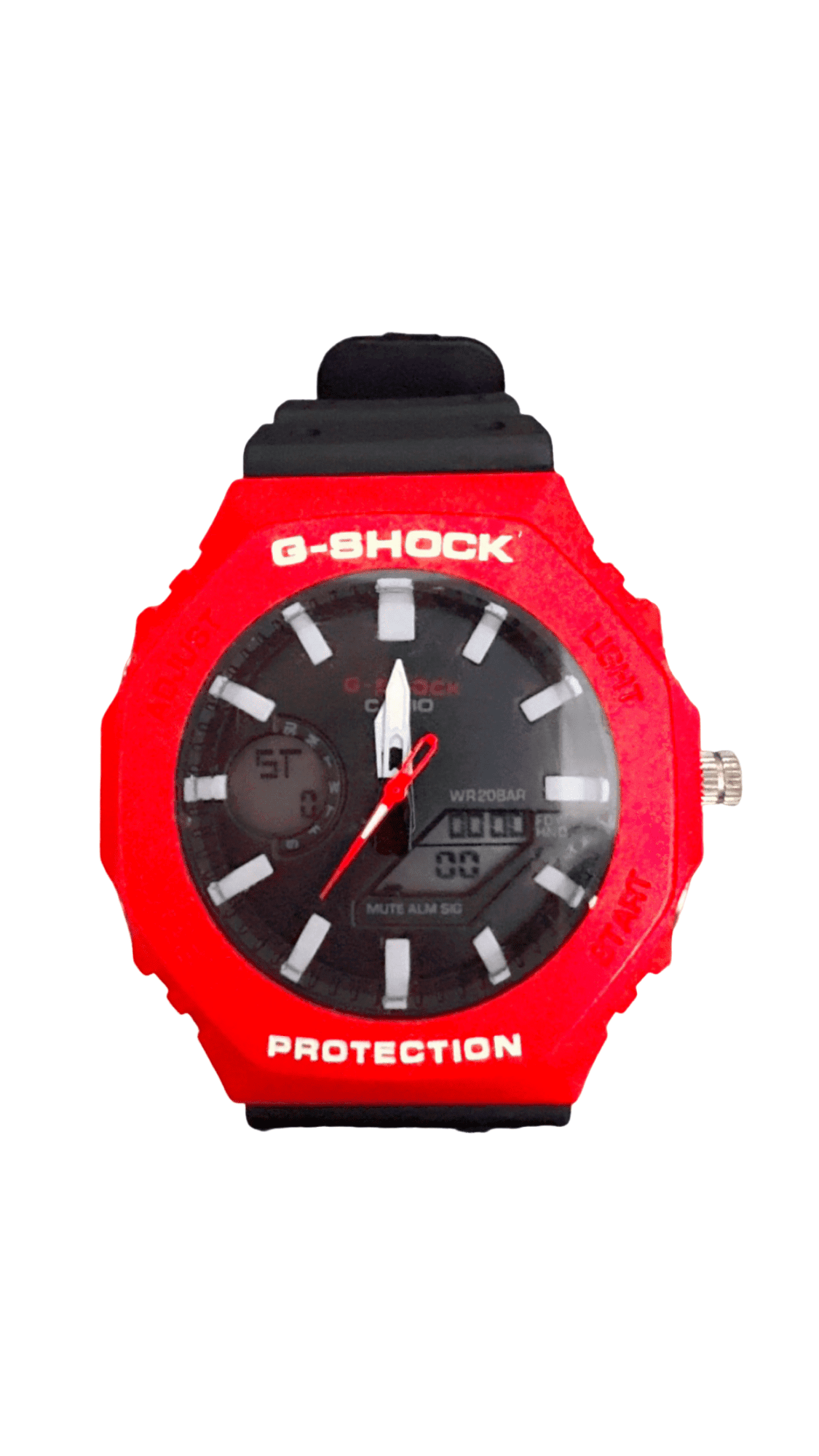 Make a statement without compromising durability. This red Casio G‑SHOCK delivers the brand’s signature toughness in a modern, slim profile with an octagonal bezel and high-contrast markers for quick readability. The hybrid analogue/digital layout keeps essential functions close at hand—ideal for training, travel, and day-to-day timing—while the lightweight resin build and comfortable strap make it easy to wear all day.